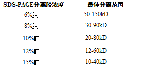 不同濃度凝膠對(duì)應(yīng)的合適分離范圍