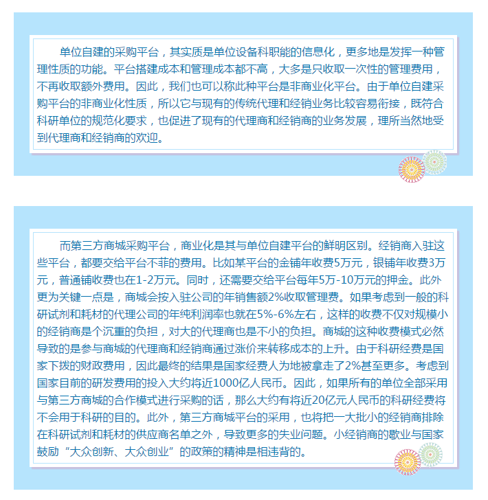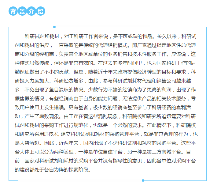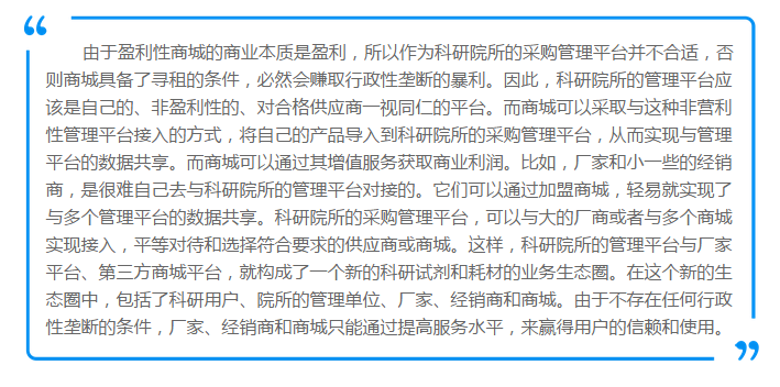 單位沒有自己出資搭建平臺,而是使用已經(jīng)存在的商業(yè)化采購平臺,所有權(quán)也不屬于單位,服務器也沒有在本單位,同時與其它多家單位共享平臺的使用。這種模式,我們稱之為第三方商城平臺。 這樣的平臺開始只在中科院系統(tǒng)出現(xiàn),現(xiàn)在已經(jīng)開始在其它大學里采用。
