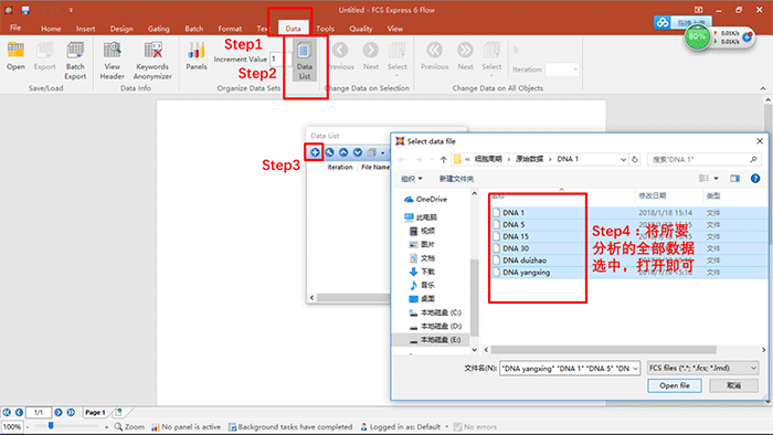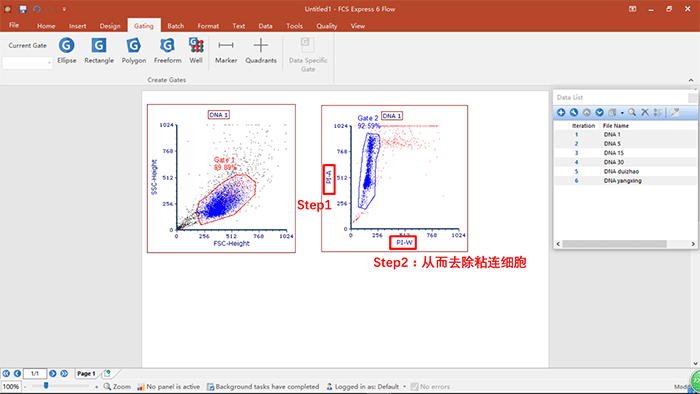 a.粘連細胞去除之后,可直接調用Denovo自帶的細胞周期分析模板,完成數(shù)據(jù)分析,具體操作如下: