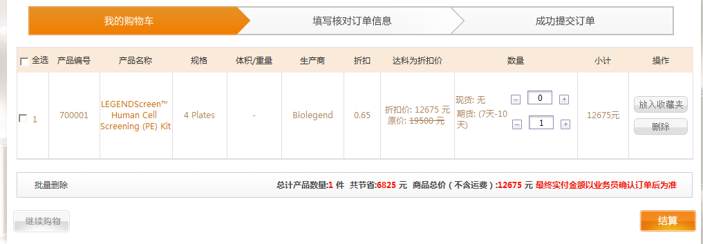 在產(chǎn)品目錄中點(diǎn)擊“放入購(gòu)物車(chē)”,可以將產(chǎn)品放入購(gòu)車(chē)車(chē)中。