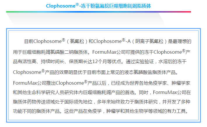 備注:FormuMax公司還可提供免費(fèi)的Clophosome?可供試用(自付運(yùn)費(fèi))。