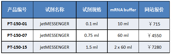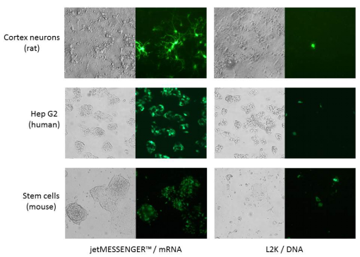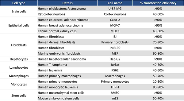 Table 1 jetMESSENGER?可在各種細(xì)胞類型中獲得高轉(zhuǎn)染效率