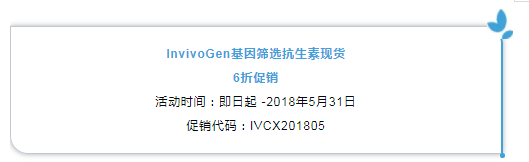 達(dá)科為生物是InvivoGen公司在中國的一級代理,并且和InvivoGen一直都有良好的合作,達(dá)科為準(zhǔn)備了大量InvivoGen篩選抗生素現(xiàn)貨,即日起篩選抗生素下列現(xiàn)貨參加6折促銷活動: