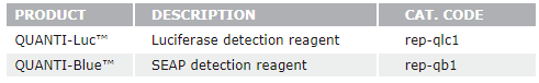 所有的RIG-I/MAVS報(bào)告基因細(xì)胞系均表達(dá)一個(gè)含有分泌型熒光素酶基因ISG(干擾素刺激基因)誘導(dǎo)型構(gòu)件?;罨疪IG-I/MAVS信號(hào)通路可誘導(dǎo)ISG啟動(dòng)子的活化并產(chǎn)生熒光素酶,該酶存在于細(xì)胞上清并能夠通過熒光素酶檢測(cè)試劑QUANTI-Luc?檢測(cè)定量。源于A549的細(xì)胞攜帶一個(gè)額外的NF-κB誘導(dǎo)表達(dá)分泌型堿性磷酸酶(SEAP)基因構(gòu)件,該酶的活性能夠通過SEAP檢測(cè)試劑QUANTI-Blue?檢測(cè)定量。