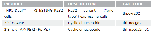 InvivoGen提供一系列STING篩選服務(wù)的選擇,用于鑒定激活或抑制一些STING突變體的分子。欲知更多信息請(qǐng)聯(lián)系我們。