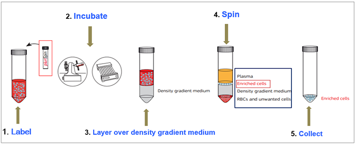 針對少量全血樣本通過淋分液分離PBMC時細胞損失太多或分離效果不好時,這里給大家分享pluriSelect另一口碑不錯用于全血樣本的富集和耗竭產品,只需要1ml全血樣本與對應指標的產品按照一定的體積比孵育,然后進行break off離心方式就可以達到對應初步的細胞富集和耗竭效果。能保證了后續(xù)要研究細胞的得率和純度,同時獲得的細胞純凈不帶磁珠。適合的樣本類型包括:PBMC, Buffy Coat, Cord Blood, Bone Marrow, Primary Cell Solution。原理非常簡單實用也讓小編腦洞大開。