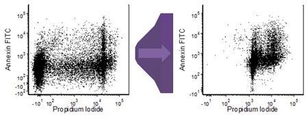 流式細(xì)胞分析時,樣本細(xì)胞中一般都含有一定量的死細(xì)胞,通過一定的方法可以減少樣本中死細(xì)胞的比例,但是完全去除樣本中的死細(xì)胞幾乎是不可能的。但流式分析的目標(biāo)為活細(xì)胞,因此流式分析時將死細(xì)胞當(dāng)作活細(xì)胞來分析,會嚴(yán)重影響流式分析的結(jié)果,通??梢赃x擇熒光染料來標(biāo)記區(qū)分死活細(xì)胞的方法,下面介紹一些流式分析時區(qū)分死細(xì)胞和活細(xì)胞的簡單方法。