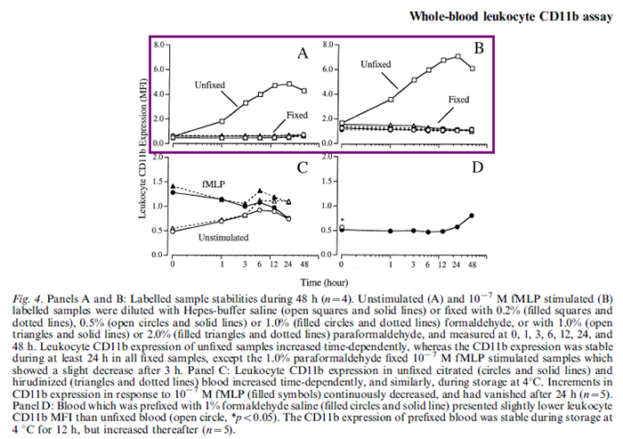 Judith C. Stewart, Michelle L. Villasmil andMark W. Frampton. Changes in Fluorescence Intensity of Selected LeukocyteSurface Markers Following Fixation. Cytometry A. 2007 Jun;71(6):379-85.
