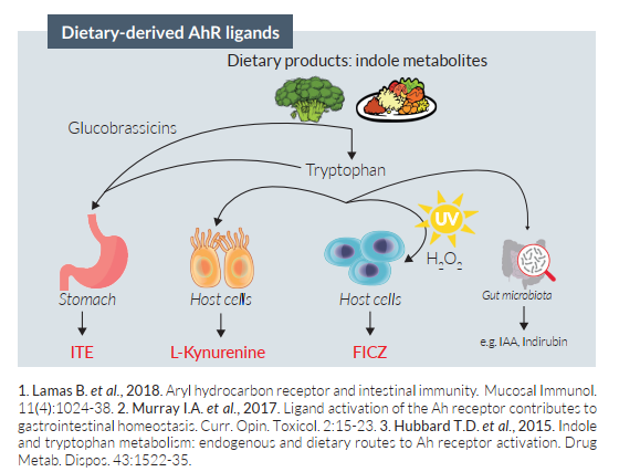 AhR能夠廣泛感知結(jié)構(gòu)上不同的外源性和內(nèi)源性分子。已被發(fā)現(xiàn)的AhR激動劑包括產(chǎn)生于外界環(huán)境中的外源化合物,如污染物;以及在胃和腸道中和其他器官中,由于光氧化或氧化應(yīng)激而轉(zhuǎn)化的吲哚代謝物。 InvivoGen提供多種膳食來源的AhR配體及其合成的AhR拮抗劑,以滿足您的研究需要。
